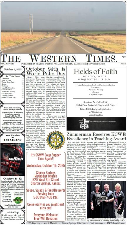 United States Senator Jerry Moran was the guest of honor at Rotary on August 6, 2025, in Sharon Springs. The meeting was hosted by the Rotary Club of Goodland and by former members of the Sharon Springs Club, who aim to renew Rotary activities locally. Jim Ross, President... [More]